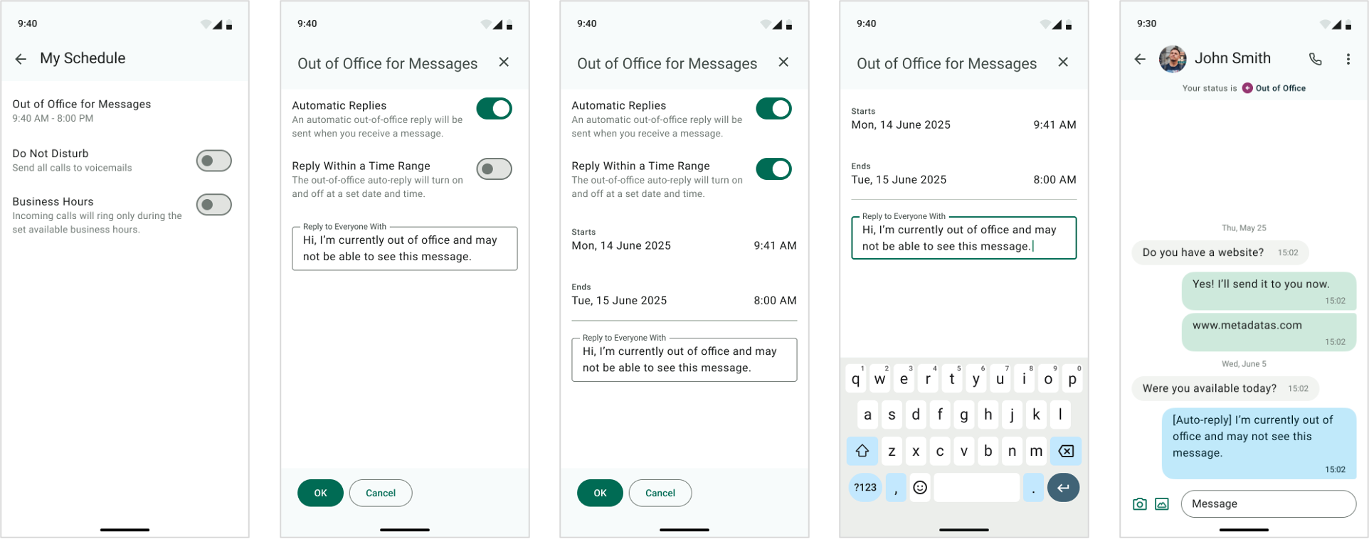 - Automatic OOO replies for SMS, MMS, and supported social messaging channels