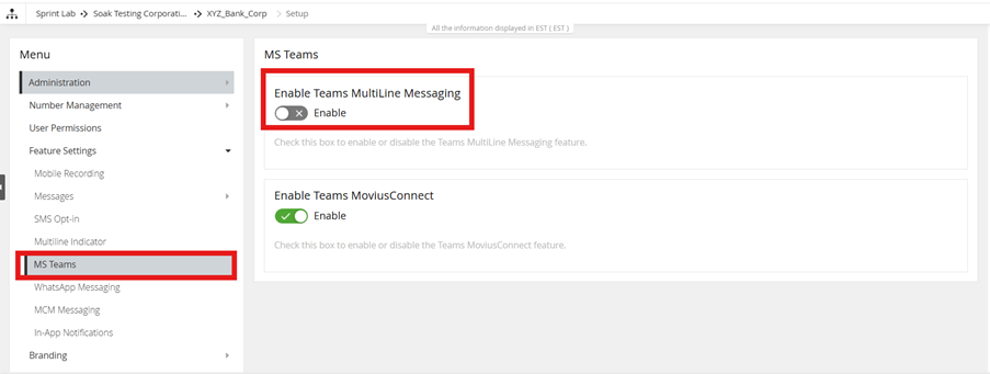 - Teams MultiLine Messaging toggle can be turned off in order to disable the feature for user.