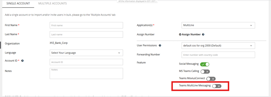 - After the Subscriber logins to Teams Messaging for the first time, there status at account changes to Activated and line record gets created. Teams MultiLine Messaging toggle is then moved at line level.