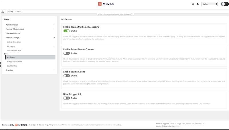 - A new feature flag Disable Hyperlink, will be available under Feature Settings in the Movius Management Portal upon request with Movius Customer Support.